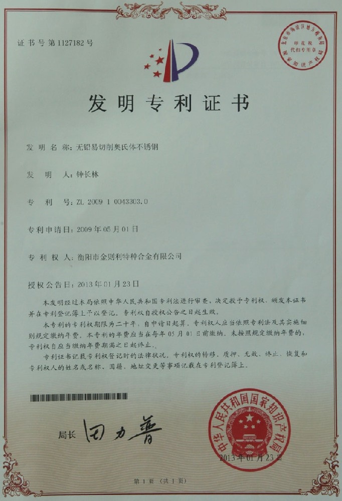 衡陽(yáng)市金則利特種合金股份有限公司成立于一九九九年十二月,注冊(cè)資本人民幣兩千兩百萬(wàn)元。注冊(cè)地址:衡陽(yáng)市雁峰區(qū)白沙洲工業(yè)園長(zhǎng)塘路2號(hào)。公司主營(yíng)耐蝕軟磁合金,為湖南省高新技術(shù)企業(yè)。公司自成立以來(lái),即致力于耐蝕軟磁合金的研發(fā)。 研制出的JL-31(00Cr13si2Pb)、JL-31B(00Cr13si2)、JL-31BS(00Cr13Si2S)、JL-37B(0Cr17Si2)、JL-37(0Cr17···